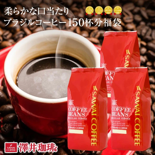 焙煎したて コーヒー豆 送料無料 珈琲豆 ブラジルコーヒー 1.5kg 500gx3袋 中挽き 豆のまま 福袋 大容量 セット 150杯分 澤井珈琲