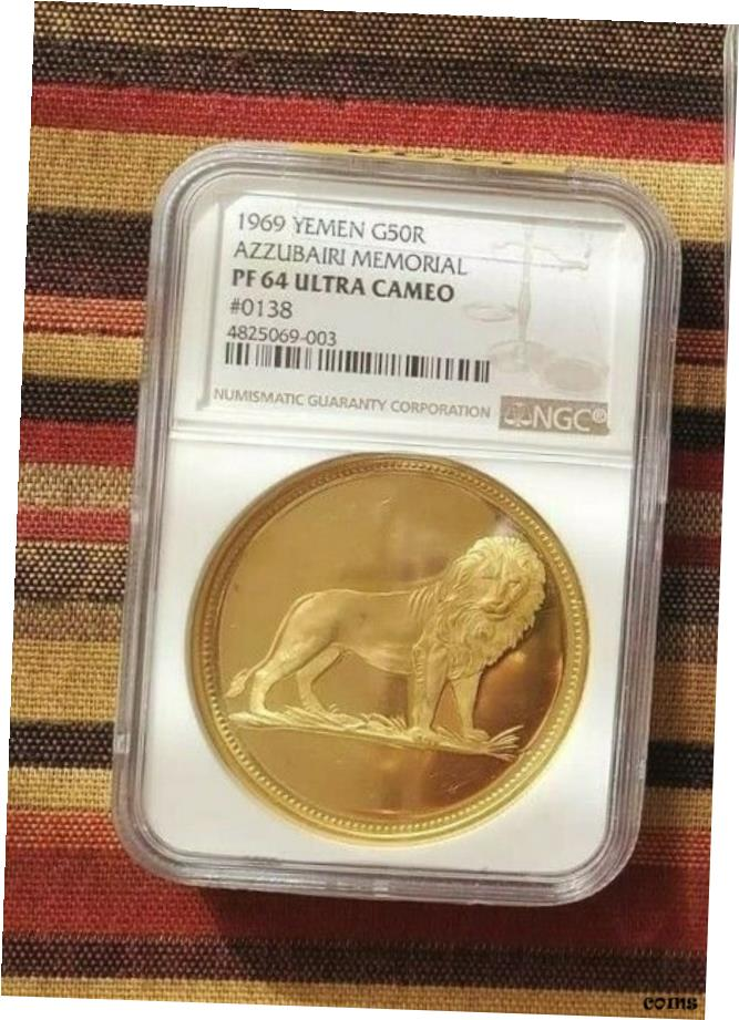 1969年 イエメン アラブ共和国 アズビリ ゴールド プルーフ ウルトラカミオ コイン 50 リアル レア- show original title1969 Yemen Arab Republic Azbiri Gold Proof Ultra Camio Coin 50 Real Rare – show original title