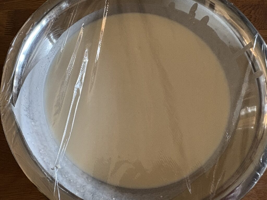 ラップをかけて暖かい部屋で1時間ほど置く。