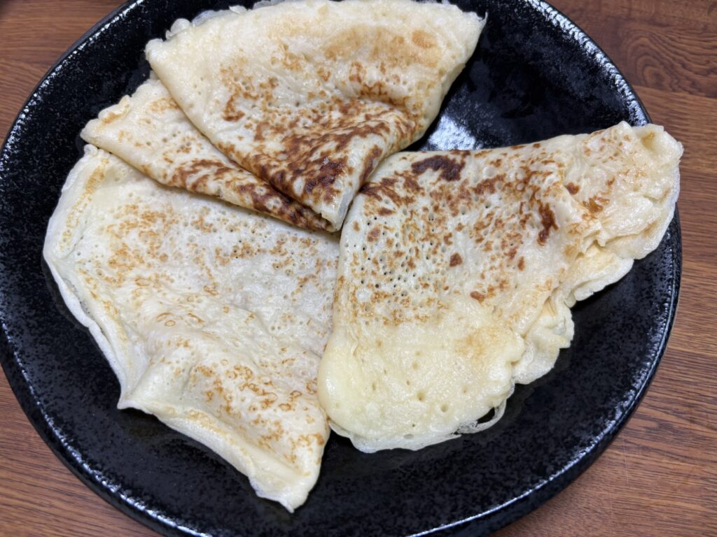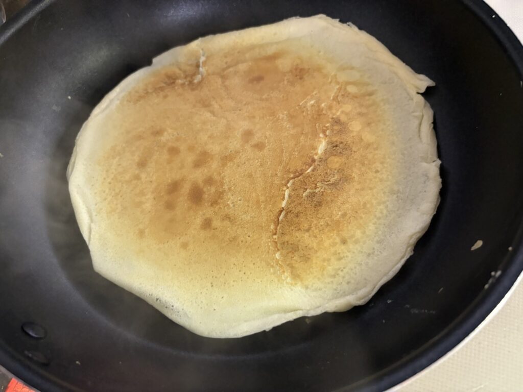 薄生地で上手く作れず、分厚くボリュームあるクレープになってしまいました。