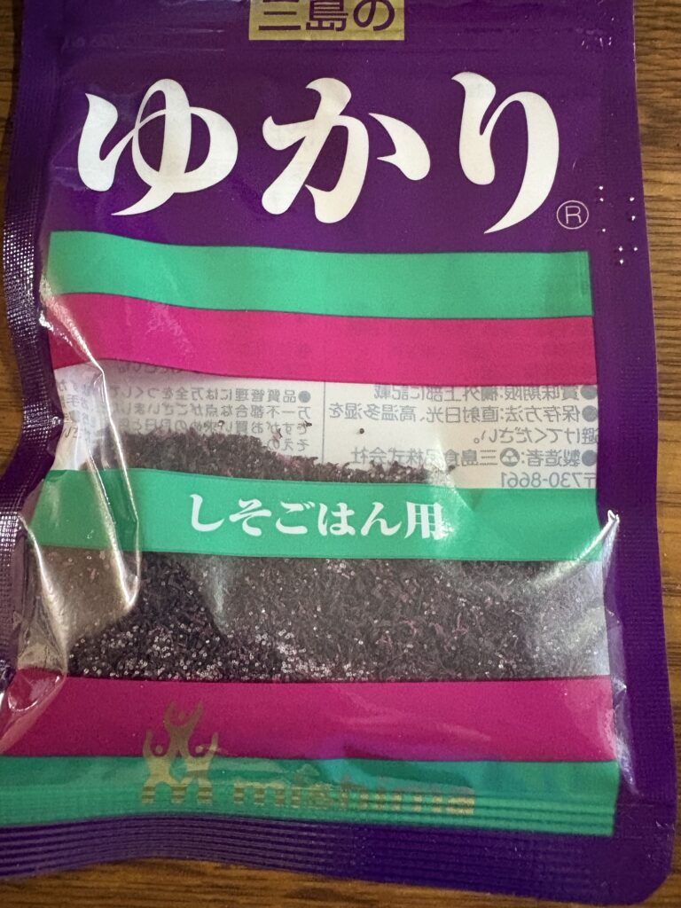 玉ねぎのうす切りを乗せ、ゆかりをかける。
